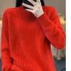 Women's Sweater Semi High Neck Thick Solid Color Sweater Pullover Casual Loose and Slimming Knitted Sweater