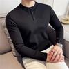 Men's T-Shirts Fashion Henry Collar Slim Fit Tshirts For Men All Match Plain Color Long Sleeve Tops Tees