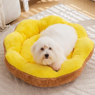 Winter Pet Bed Flower Shaped Plush Dog Bed with Anti-slip Bottom Fluffy Pet Bed with Removable Washable Cover for Small Dogs Cats