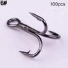 100Pcs High Carbon Steel Treble Hooks 7 Size 2/4/6/8/10/12 Fishhook Tackle