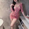 Black Open-Crotch Fishnet Bodysuit & Silk Robe Set