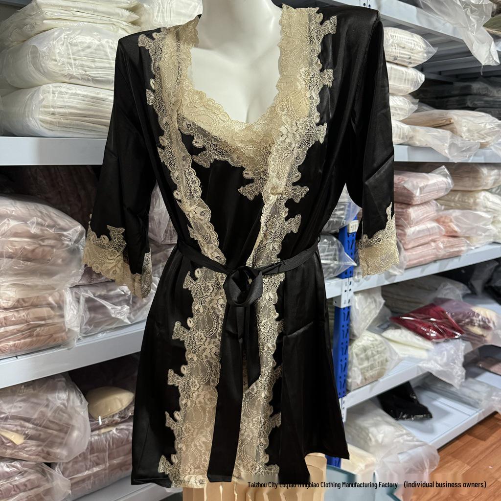7019 Women's Sexy Lace Silk Nightgown & Bathrobe Set