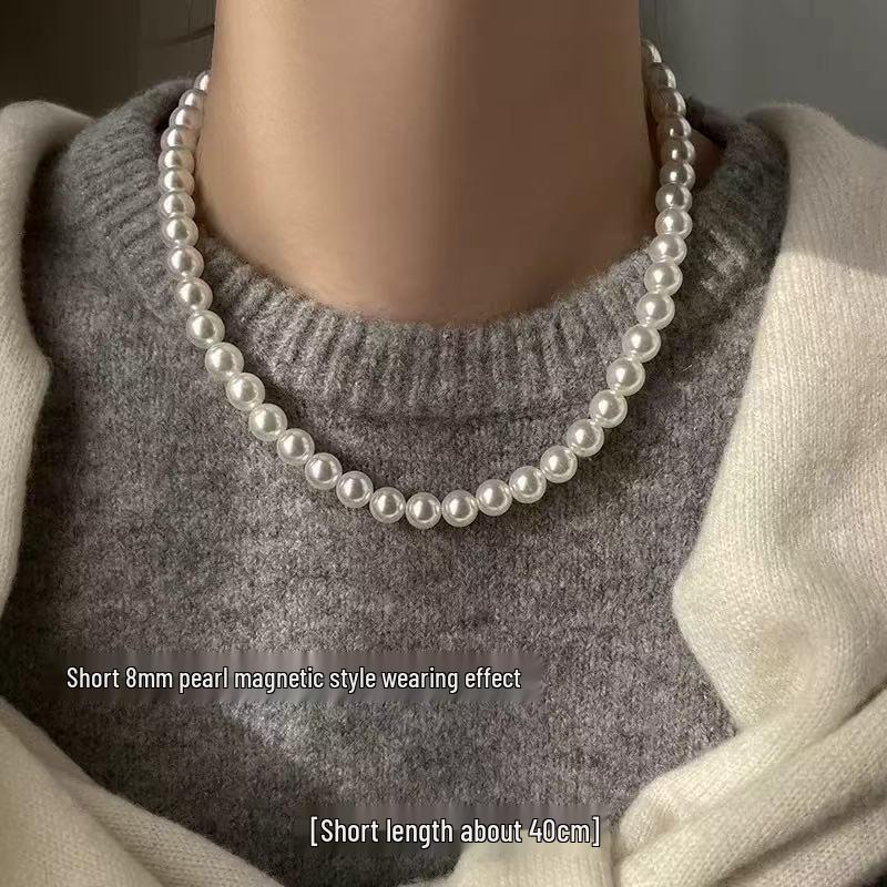 Elegant Women's Pearl Necklace with Magnetic Clasp - Classic, Versatile Choker