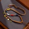 Tibetan Five Wealth Gods Hand-woven Thangka Necklace with Adjustable Multi-color Lanyard