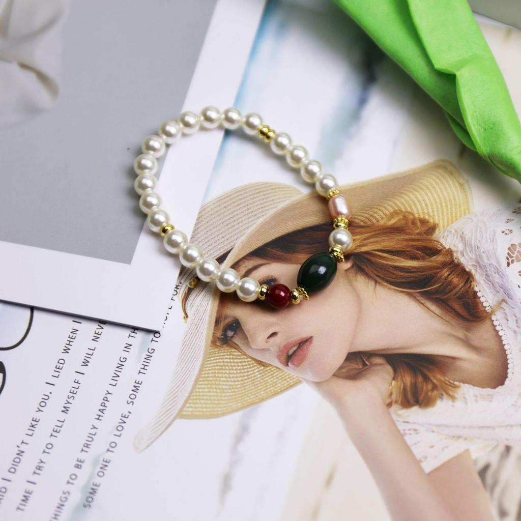 Shijia Nude Pink Natural Pearl Elastic Bracelet - National Tide Style, Light Luxury