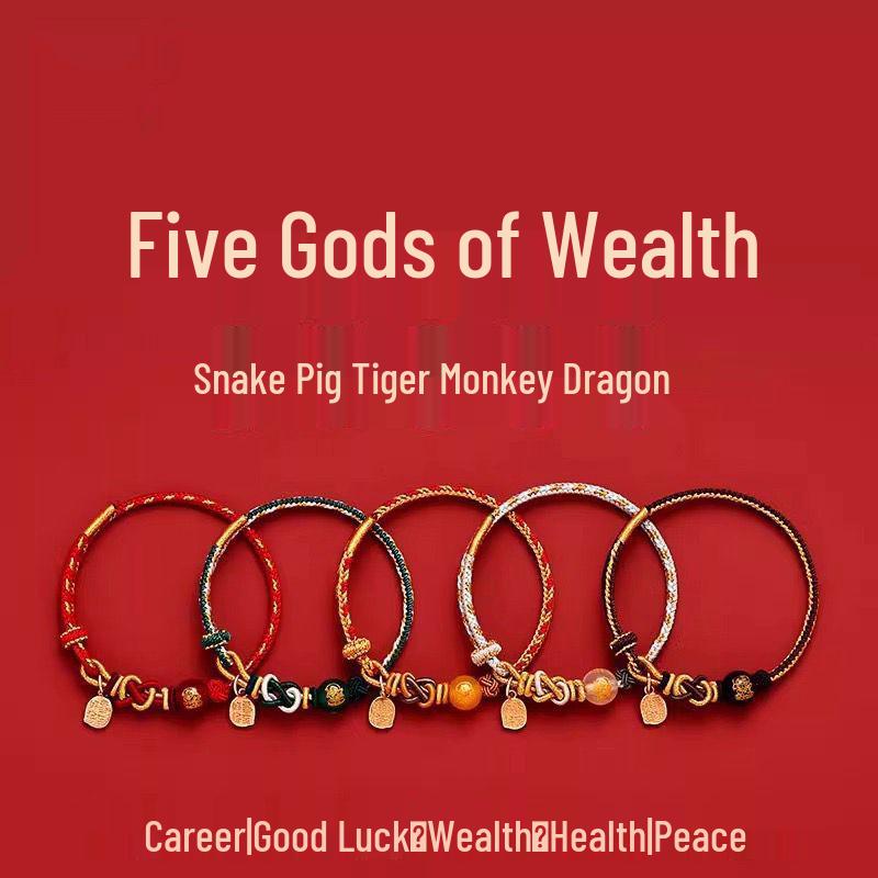 2025 Year of the Snake Red String Zodiac Bracelet with Five Paths God of Wealth Charm