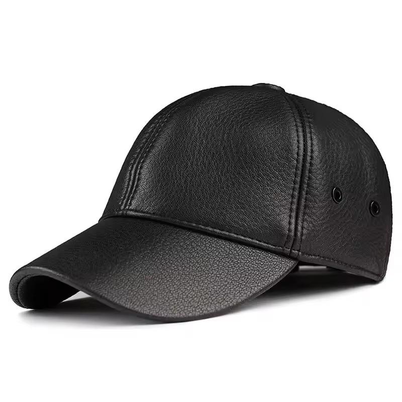 Men's Genuine Lambskin Leather Duckbill Baseball Cap - Autumn/Winter Warm Grandpa Style