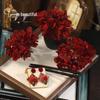 Retro Wine Red Fabric Flower Bridal Hairpin - Classical Chinese Style Headpiece