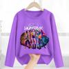T-Shirts Girls Long Sleeve Children's Cartoon Printed Clothing Children's Purple Clothes Girls Crew Neck Top