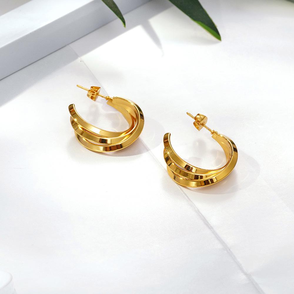 IMI Minimalist Geometric Titanium Steel Earrings: European & American Style Double Layer Crescent Moon Earrings for Women (YE299)