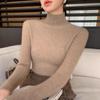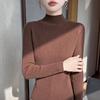 Women's Coffee High-Neck Sweater - Celebrity Style, Fall/Winter 2025, Slim Fit, Solid Color, Base Layer.