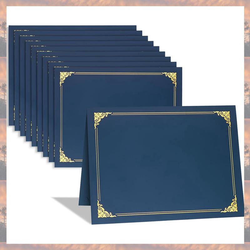 2025 Trend 10 Piece Certificate Holders, Diploma Holders Certificate Covers With Gold Foil Border Blue Paper For Letter Size 8.5
