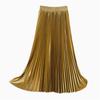 Women's Solid Color Satin Pleated Midi Skirt with High Waist and Flared Hem