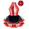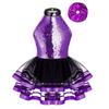 Girls Dance Performance Dress Halter Sleeveless Backless Design Sparkling Sequins Decorated Tutu Costume