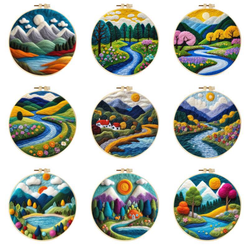 1pc Landscape Embroidery Kit with Felt Painting Design - DIY Gift