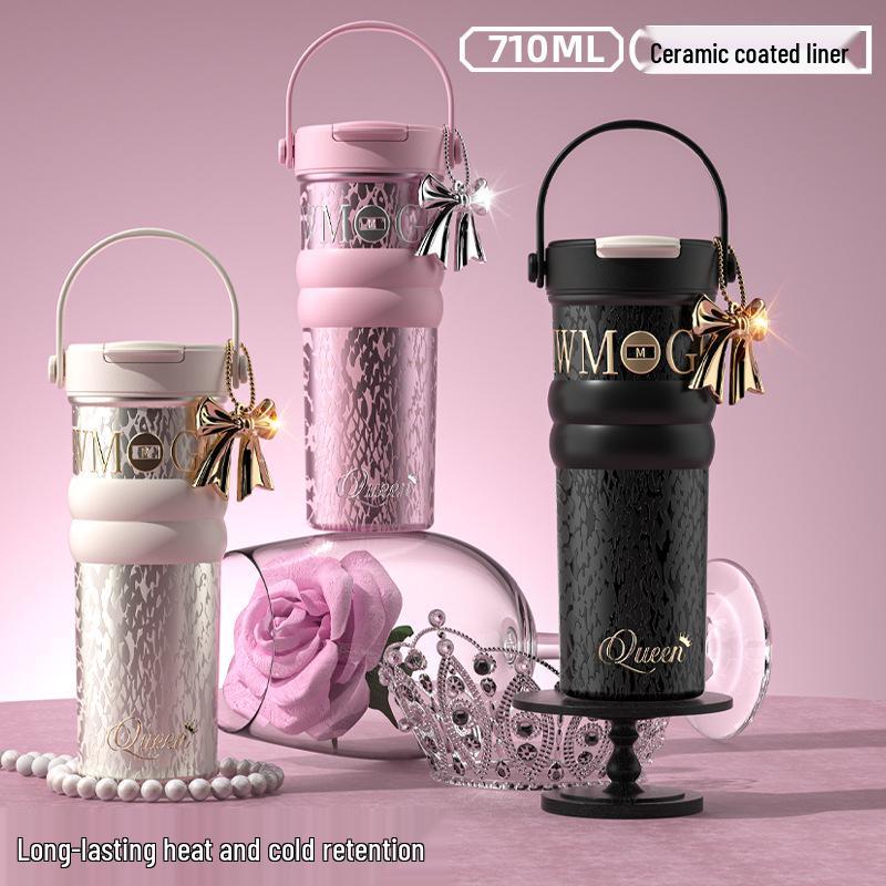 Women's Large Capacity Insulated Fruit Tea Cup with Ceramic Liner