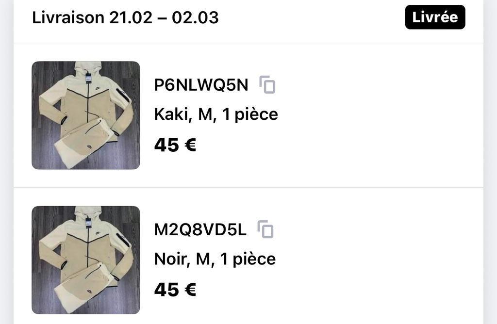 Hello, I ordered two Nike tech items for €45 x2 totaling €90, unfortunately I was delivered fake Nike items with the wrong size compared to what I ordered on your site. The nylon quality and product quality are obsolete (I am sending you photos). Please see how to find a solution to re-send me the Nike tech items I requested (see attached photo). Thank you for fully refunding me.. Best regards.