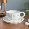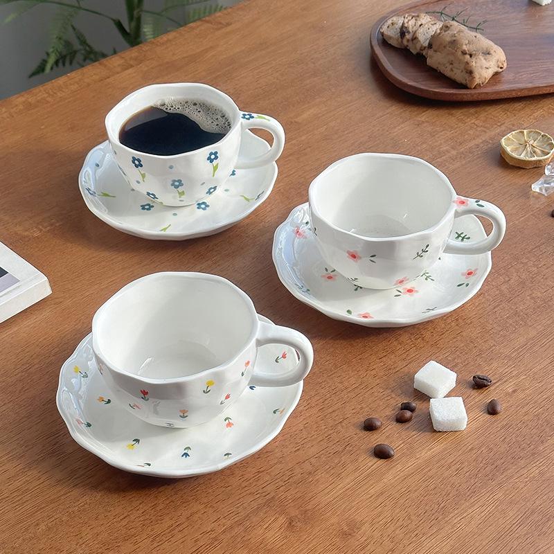Korean Style Hand-Pinched Floral Ceramic Coffee Cup & Saucer Set - Hand-Painted Design, Perfect for Afternoon Tea