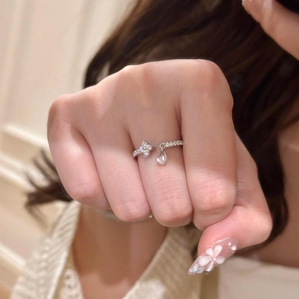Elegant Adjustable Four-Leaf Clover Dewdrop Ring for Women - Unique High-End Design, Simple Versatile Style