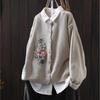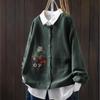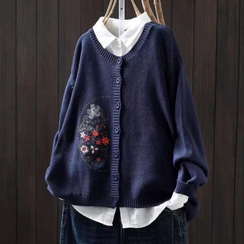 Johnature Women Vintage Embroidery Floral Sweaters O-Neck Long Sleeve Solid Color Button Knitted Autumn Sweaters