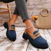 Women's Plus Size Chunky Heel Suede Loafers - British Style, Thick Sole, Spring/Autumn 2025