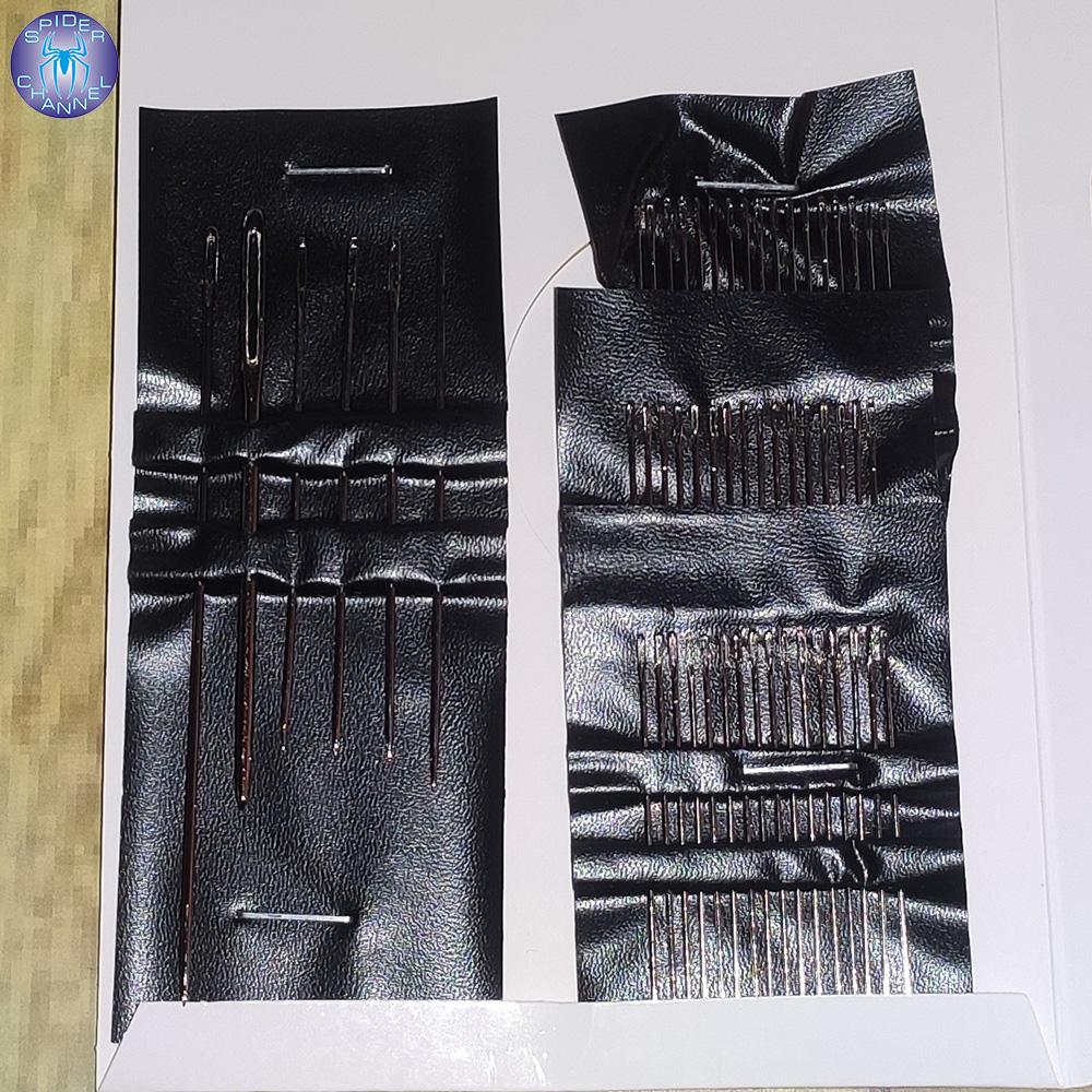 The package includes multiple needles with different lengths and eye thicknesses. This allows working with different types of threads and fabrics, from fine silks to thicker wools or embroidery threads.. Organization: The needles come arranged in a practical black holder that keeps them organized and protected, facilitating the selection of the appropriate tool for each task.