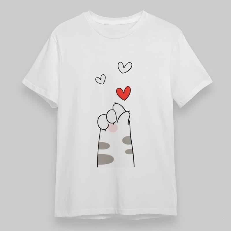 Women's Plus Size Classic T-Shirt Cat Paw Prints With Hearts Graphic Cotton Tee