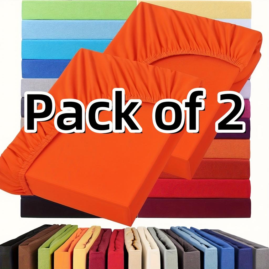 Pack of 2 Jersey Fitted Sheets Hypoallergenic & Breathable Bed Sheets with Elastic, 28cm Height, Allergy-Friendly,Machine Washable,Solid Color Bedding