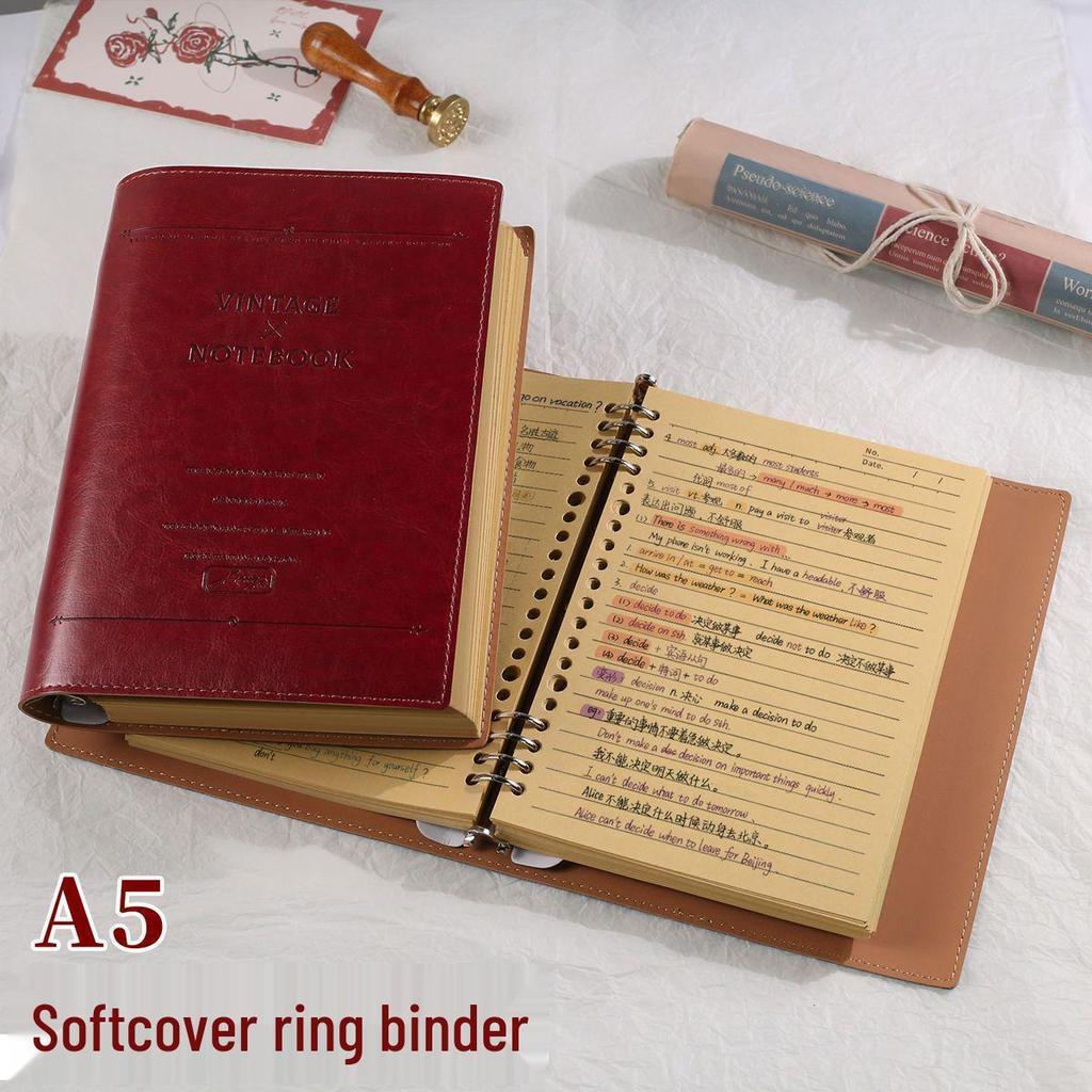 Premium A5 Soft Leather Ring Binder Notebook with Removable Cover - Lined Office Diary