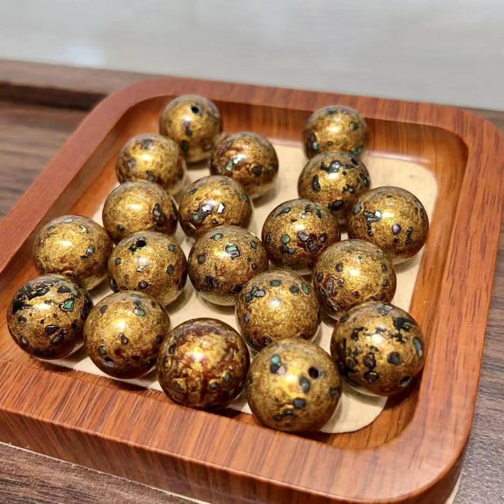 This exquisite collection of bracelet beads is meticulously crafted to reflect a deep cultural significance and artistic mastery. Each bead is adorned with golden yellow mother-of-pearl inlays, showcasing a flawless shine that enhances its intricate design. The lacquer finish provides a delicate yet durable surface, making it a perfect piece for those who appreciate the fusion of spirituality and elegance. Representing intangible cultural heritage, these beads serve as a timeless addition to any jewelry collection, ideal for meditation or simply as a symbol of refined craftsmanship.