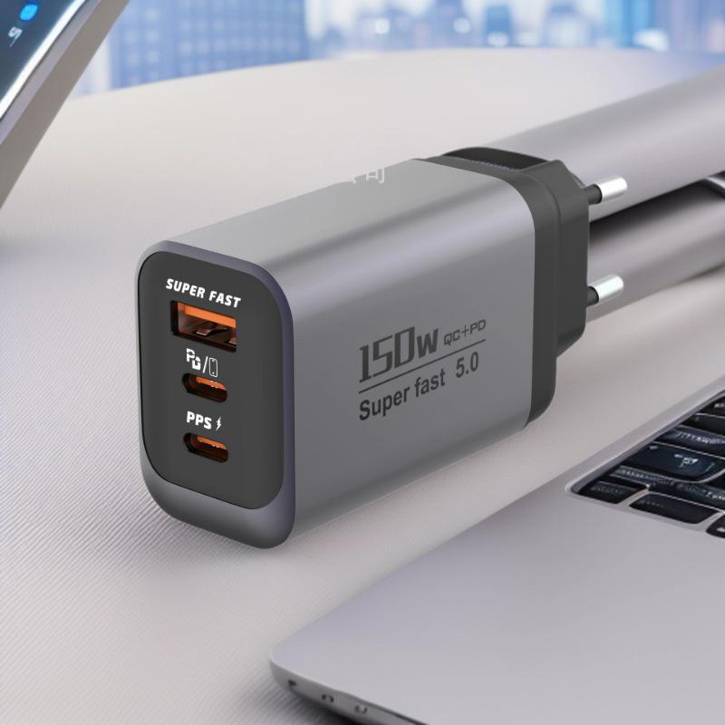 150W Multi-Port Fast Charger with 1 USB-A + 2 USB-C PD Ports - Compact Travel Adapter