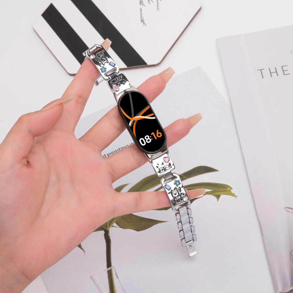 Cute Puppy Bangle Strap for Xiaomi Mi Band 8/9, Huawei FIT4, Redmi 5 Metal-Color Diamond Chain