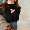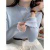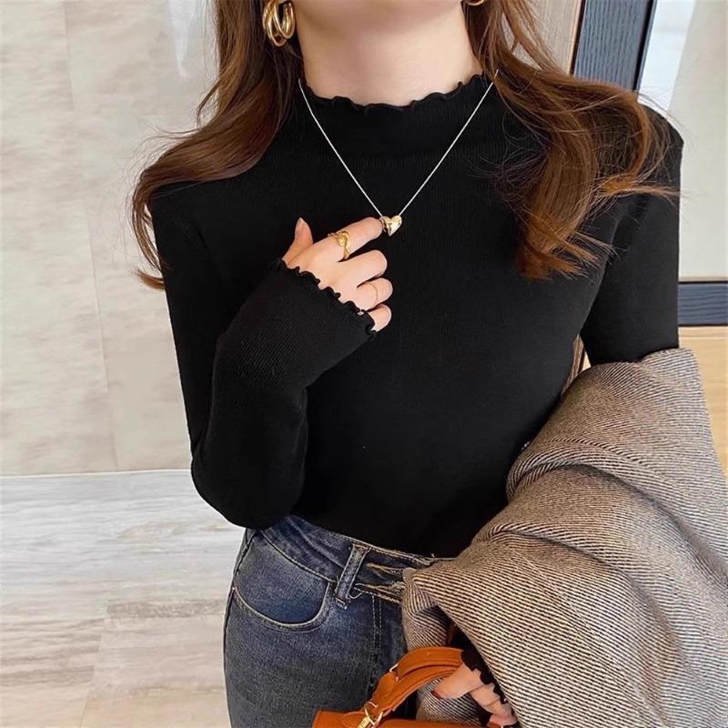 Spring and Autumn New Wooden Ear Edge Semi-turtleneck Sweater Knitted Sweater Top Women's Outer Wear Inner Bottoming Shirt