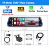 10 Inch 4K Car DVR Wireless Carplay Android Auto Dash Cam for Car DVR Dual Video Recorder Rear View Mirror Camera 5G Wifi GPS