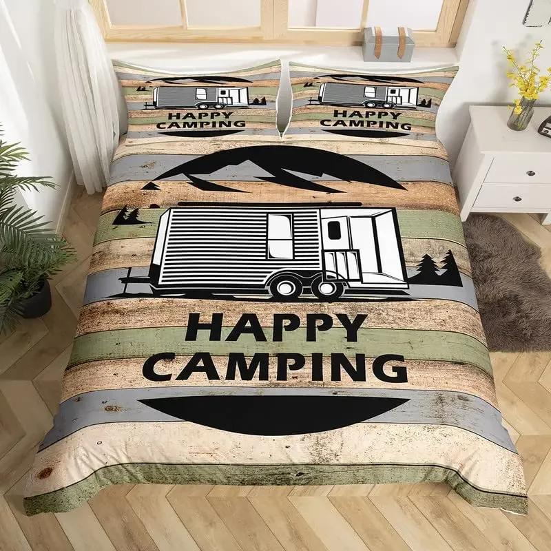 Camper Bedding Set Kids Happy Camping Duvet Cover Set Microfiber Rv Camping Quilt Cover Camper Accessories For Travel Trailers