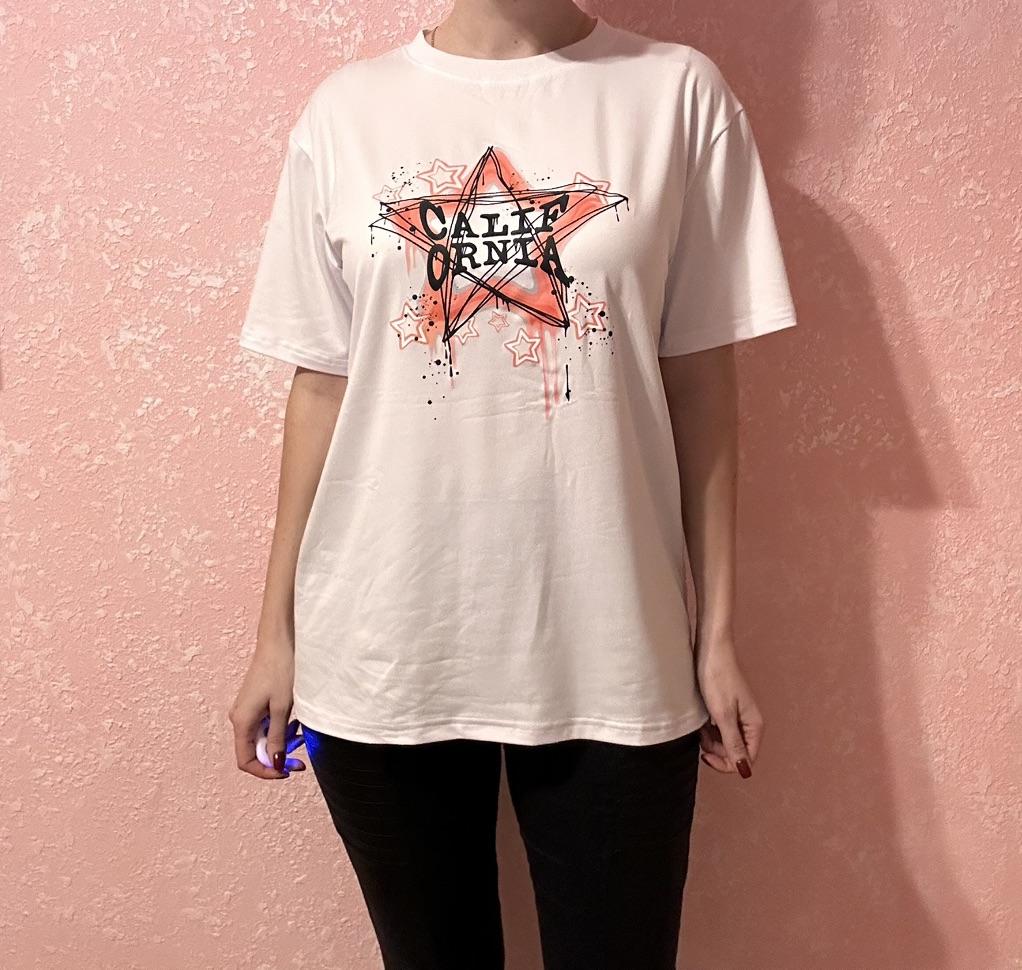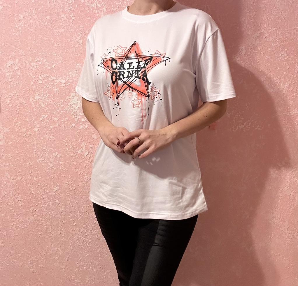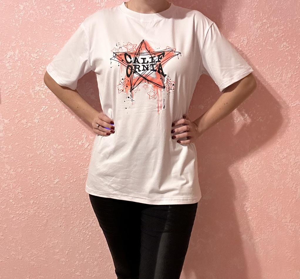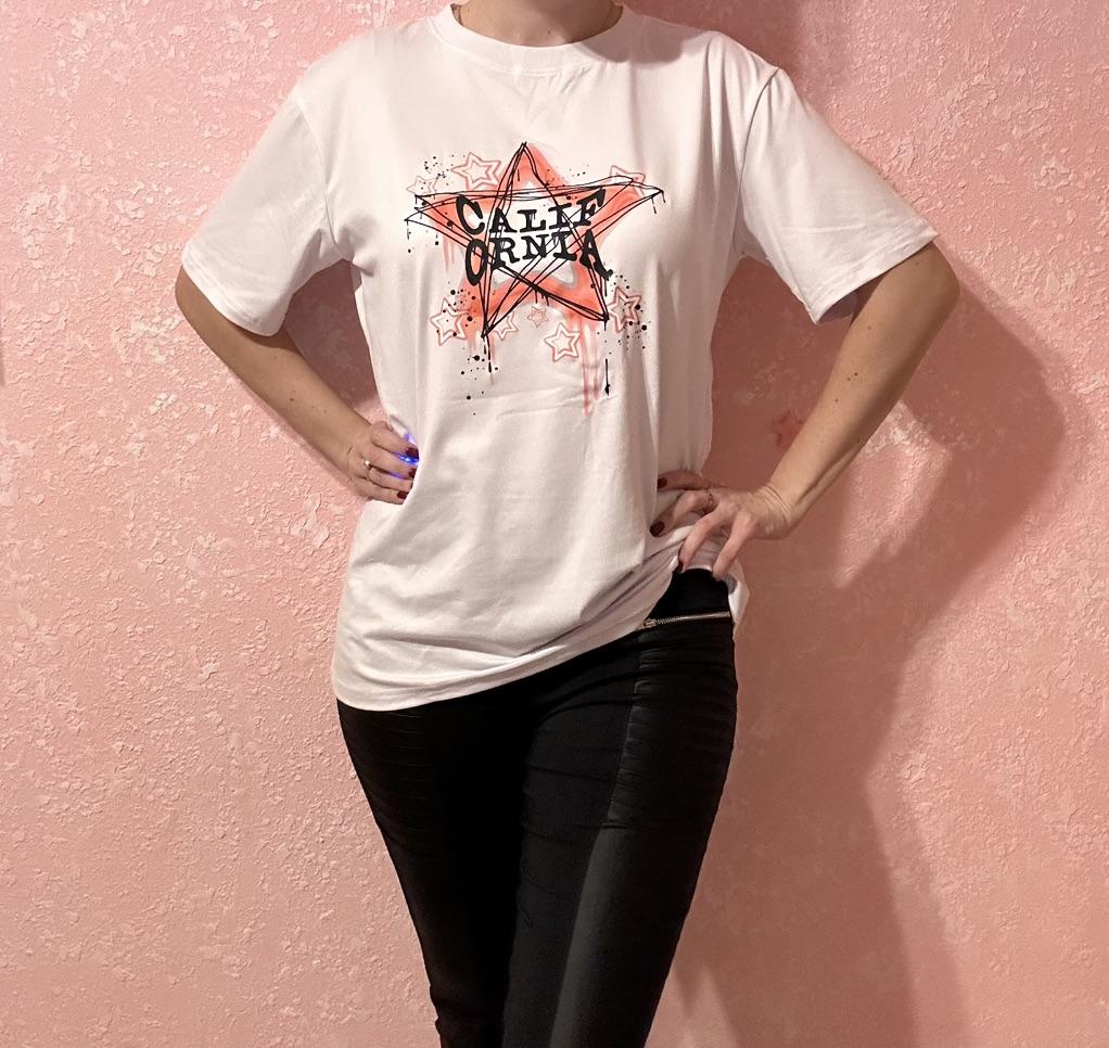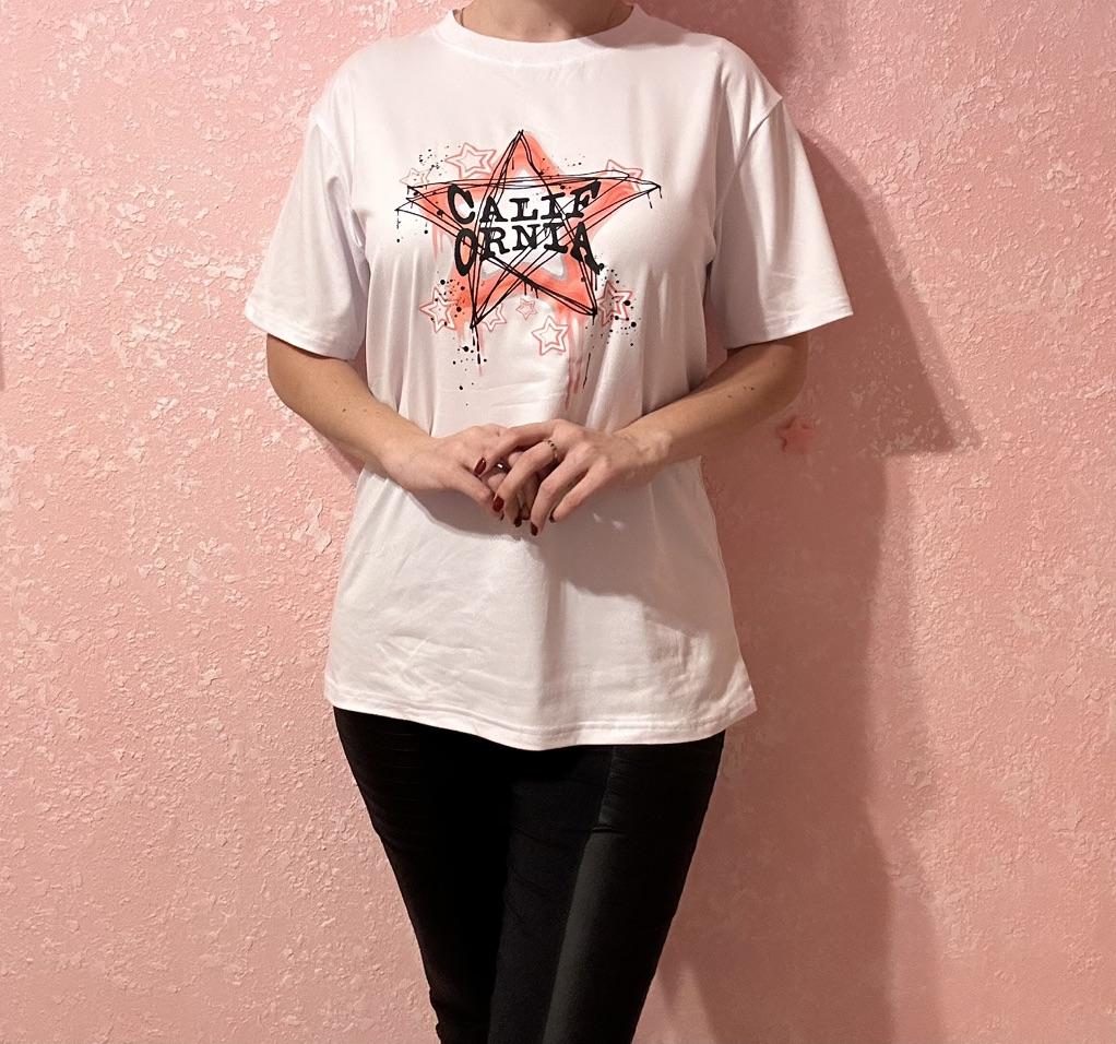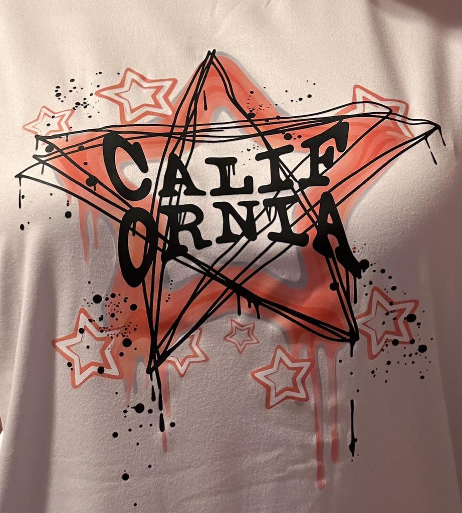 Oversized T-Shirt Black Pink Star Graffiti Print With Text Cali Born For The Night Casual Streetwear Style For Women