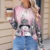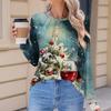 Women's Fashionable Casual Christmas Printed Pleated Comfortable Round Neck Loose Long Sleeve T-Shirt Top