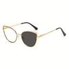 1 Pair Of New High-End Metal Cat'S Eye Frame Fashion Anti-Blue Light Color-Changing Glasses For Men And Women