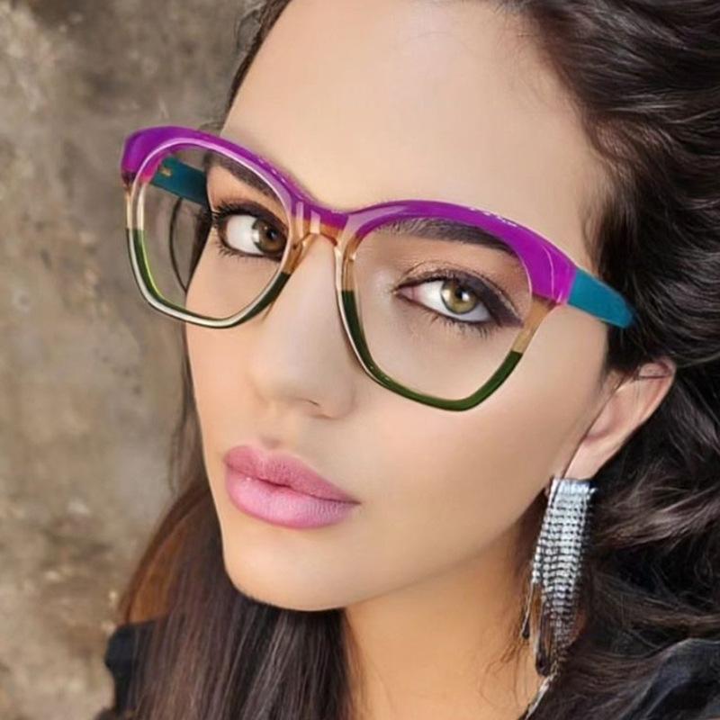 Luxury Brand Design Anti Blue Light Large Women Patchwork Color Frame Photochromic Hyperopia Glasses Personalized +100~+600