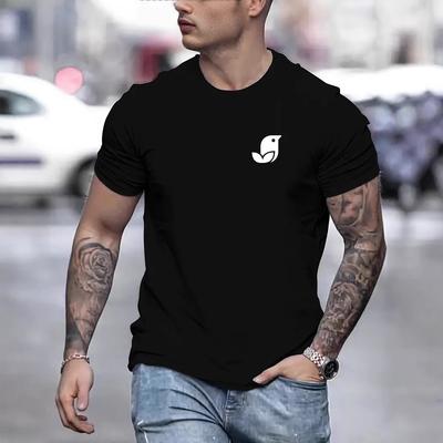 European Sizes Simple Line Dumbbell Print, Men's Wear, Casual Style, Very Versatile Men's T-shirt, Casual Short-sleeved T-shirt