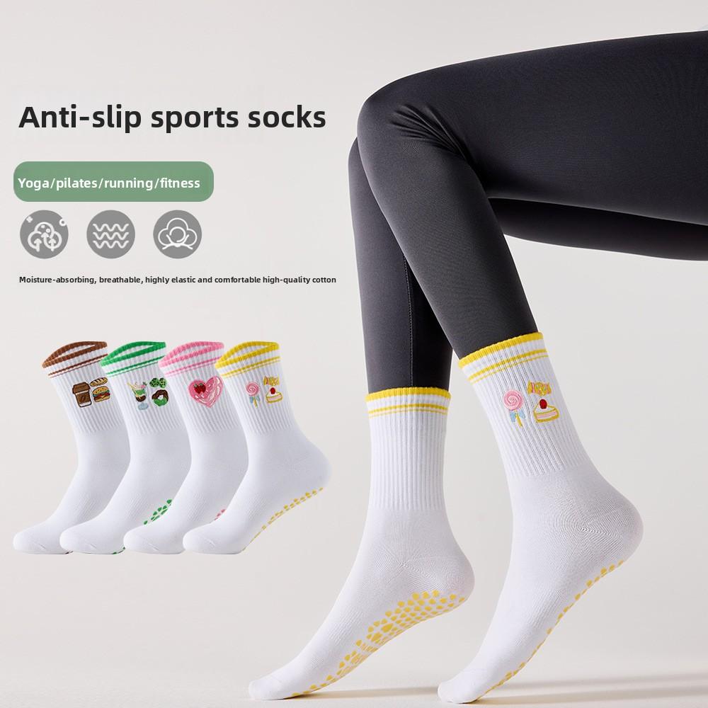 Sports Socks, Women's Mid-calf Socks, Anti-slip Yoga Socks, Personalized and Trendy Embroidery, Fitness Training, Pilates