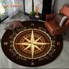 3D Retro Compass Series Circle Area Rug,Round Carpet Rug for Living Room Bedroom Sofa Foot Pad Decor Non-slip Floor Mat Gift