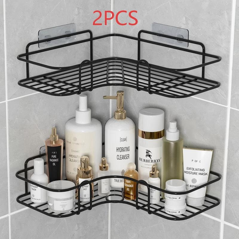 2pcs Punch-free Shower Corner Caddy, Toilet Corner Shelf, Toiletry Rack, Washroom Triangle Storage Rack, Wall Mounted Storage Ra