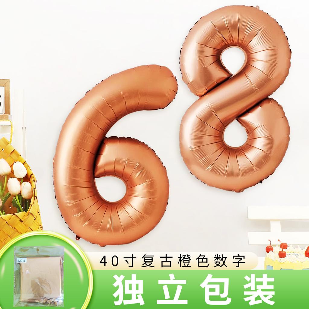 40-Inch Retro Orange Digital Aluminum Film Balloon, Baby Children'S Birthday Party Classroom Decoration Wedding Celebration Decoration