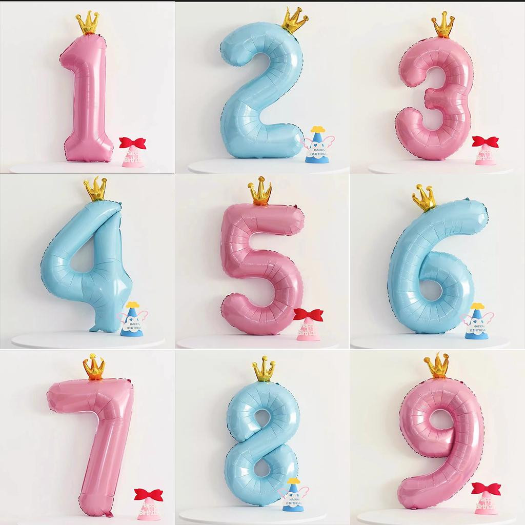 42 Inch Baby Pink And Blue Crown Digital Balloon Children'S Treasure First Birthday Party Scene Decoration Indoor And Outdoor Decoration