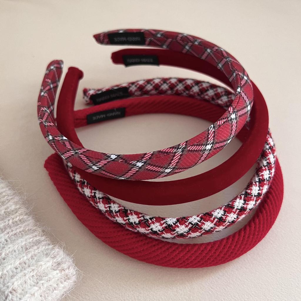 Red Plaid Retro Headband - Women's Festive Thin Edge Hair Clip