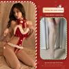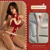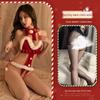 Red Christmas Lingerie Role Play Bodysuit: Open Crotch & Temptation