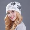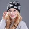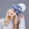 Women's Wool & Rabbit Hair Blend Snowflake Pullover Hat with 15CM Genuine Raccoon Fur Pom Pom