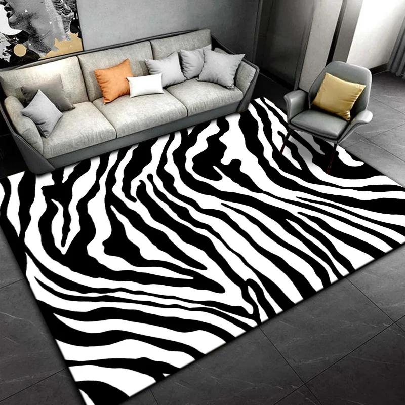 Black White Print Zebra Pattern Area Rug Large,Carpet Rug for Living Room Bedroom Kitchen Doormat Decoration,Non-slip Floor Rug