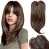 Gradient Long Straight Hair Topper with Side Bangs - Invisible Seamless Synthetic Hairpiece for Covering Gray Hair